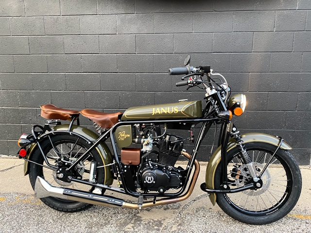 Let’s start with the ordering, shipping and customer delivery. Janus—as most of you know—is a great company. I got to pick out everything on my Halcyon and got exactly what I wanted. It’s a simple olive green bike, with gold pinstripes and medium brown leather. Extras were kept to a minimum, and all I ordered was a sprung passenger seat and fishtail exhaust. The process was super-easy. The bike was done in less than four weeks and shipped to me. Shipping took too long (about 20 days), but the bike arrived in perfect condition in an enclosed trailer. Before the bike landed, I already had the bill of sale, MSO, keys, manual and more. Total cost was $7395 plus shipping—a lot for a 250 cc motorcycle. But I really wanted it!