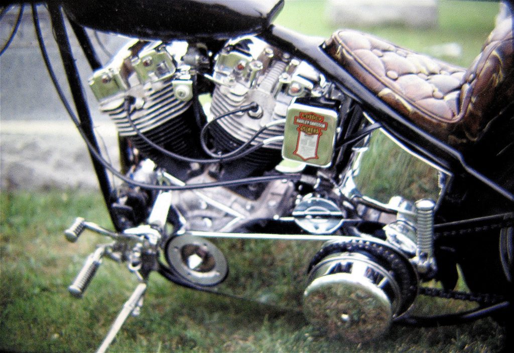 In the 1960s, building model cars was an open door to allowing me to express myself. I could paint my models any color I wanted, and customize them to my heart’s content. By the mid 1970s, I let myself loose on a Harley Davidson, creating a nine foot long chopper. It featured a 1200cc Pan Head bottom end, and Shovel Head top end, Jammer frame, extended girder front end, and loads of fabricated designs, like the in-tank-mounted speedometer, with its drive cable sneaking out the bottom of the tank itself. I worked on funny cars at the time, and so having a blower belt drive primary seemed appropriate, and it was a rare sight back then. Ironically, it was not only my first rigid frame motorcycle, (Halcyon #568 was my second), it also had an early S&S carburetor, (the Halcyon EPA certification was also done by S&S over 30 years later).