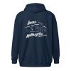 Designed with style and comfort in mind, this hoodie will quickly become your new favorite. It’s made from soft fleece inside and outside, with a sturdy metal zipper, convenient front pockets, and a hood with color-matched drawstrings.