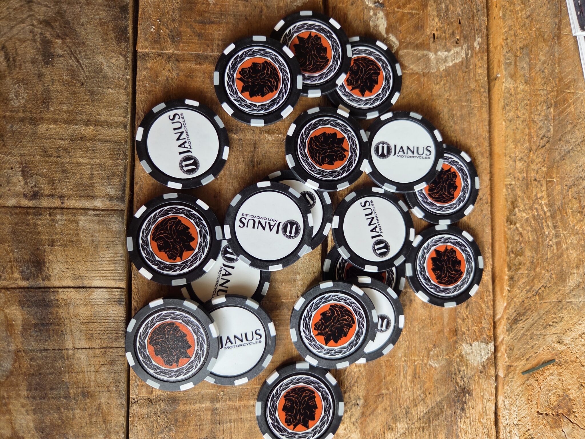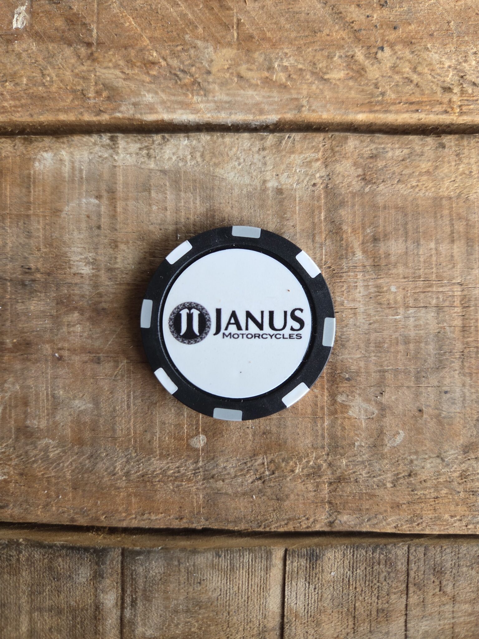 Heads logo on one side, Janus Motorcycles on the other. Add this one to you collection today!