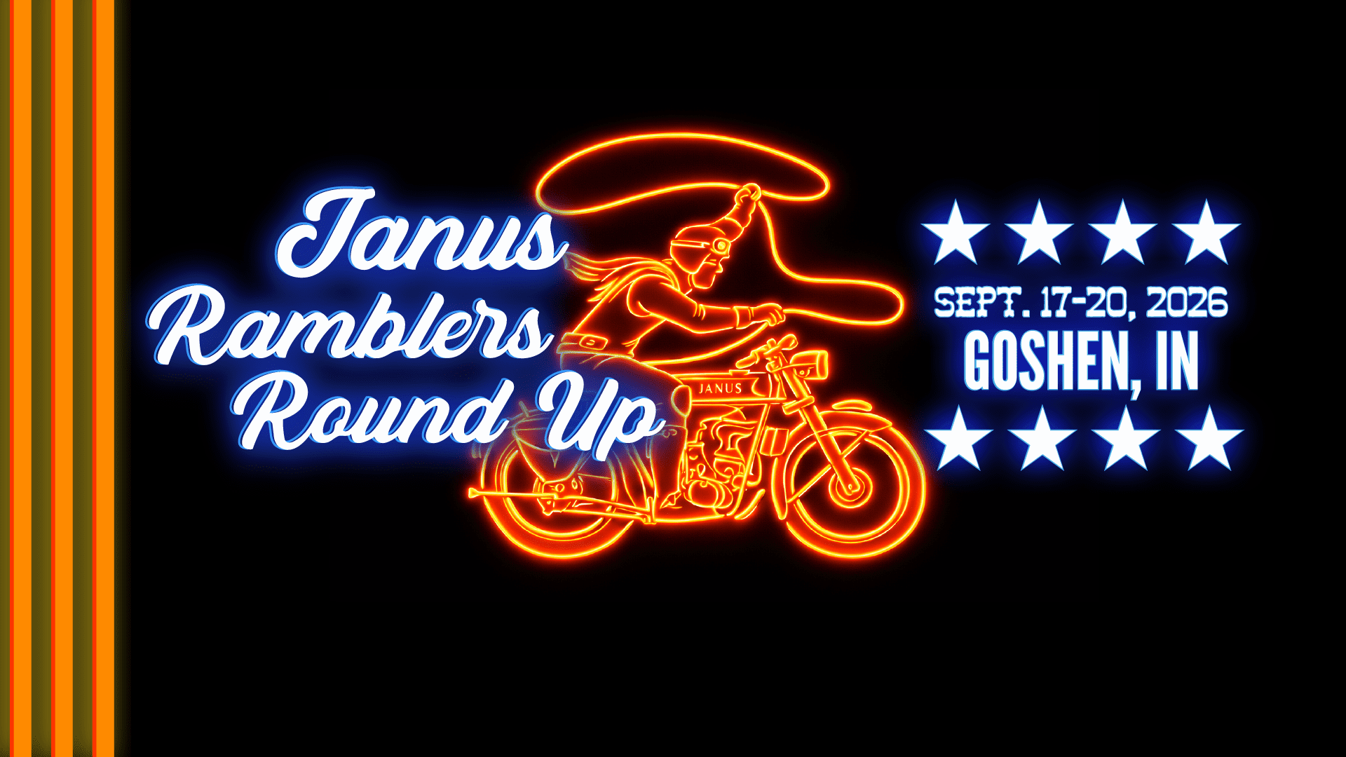 Janus invites you to Goshen for a few good days of riding, rambling, camaraderie, and celebration during our Ramblers Round Up! Whether it’s your first time visiting or your eighth, we’ve planned a full weekend to enjoy the roads, the company, and the simple pleasure of being around good machines and good people.
